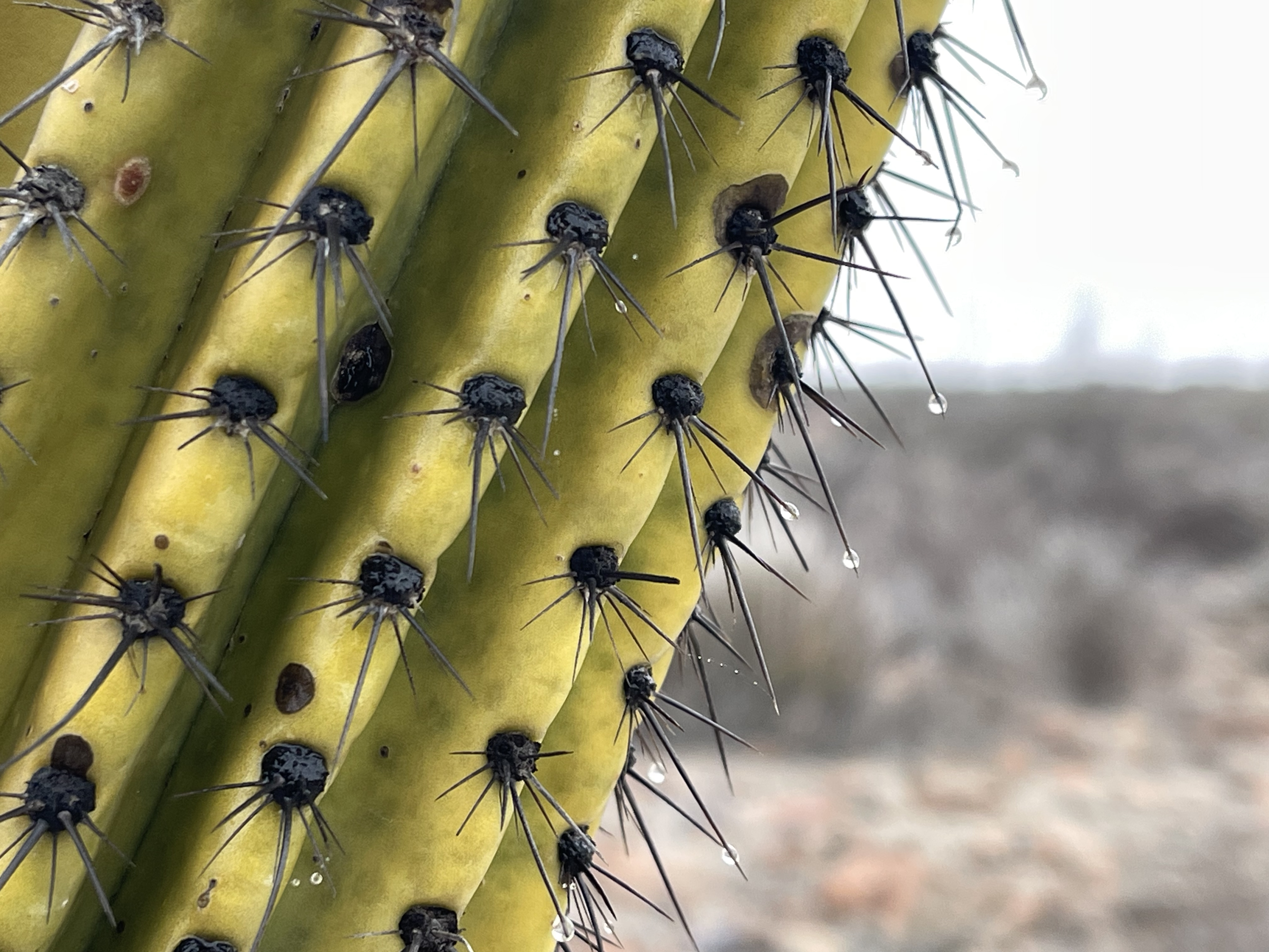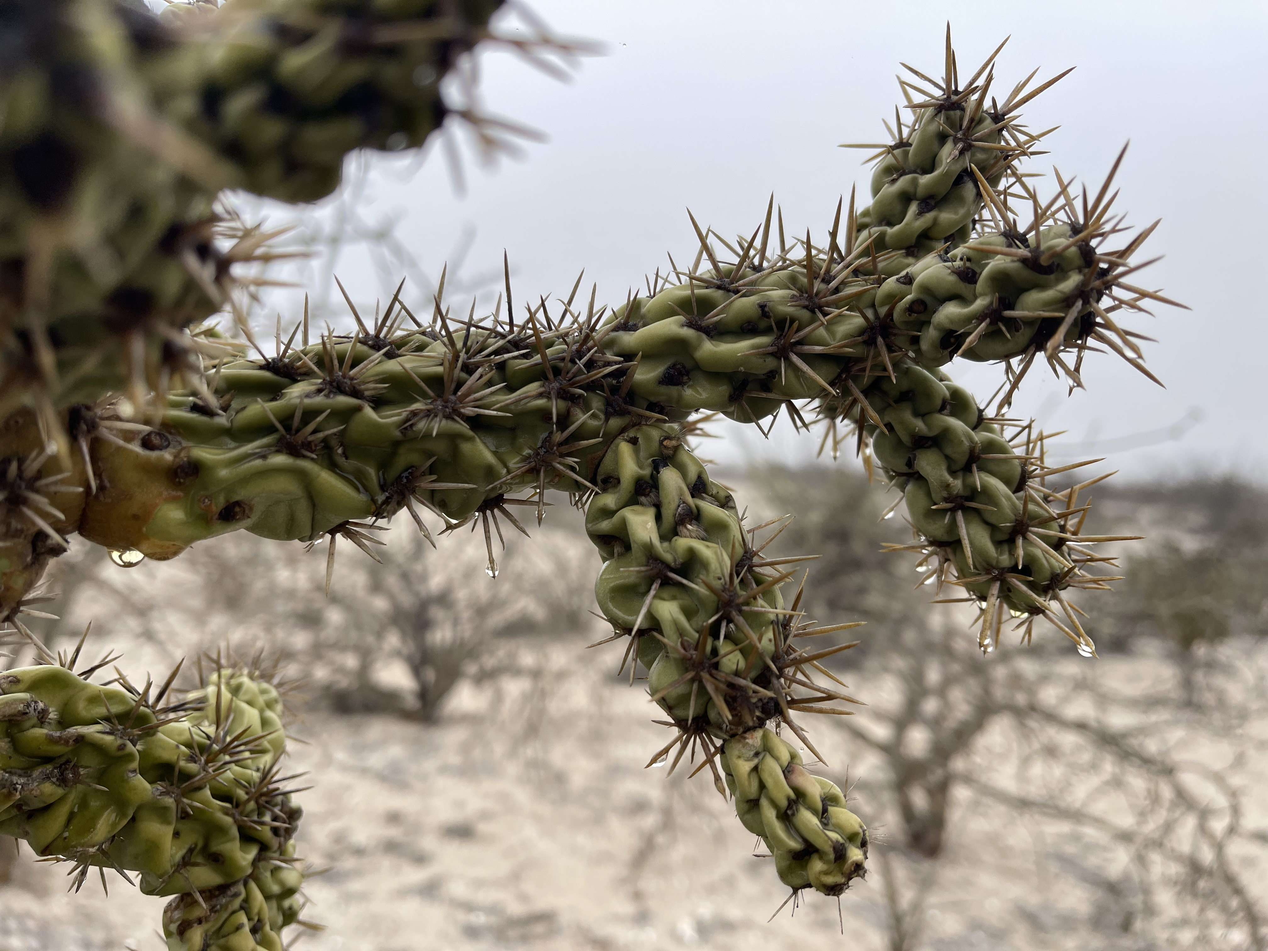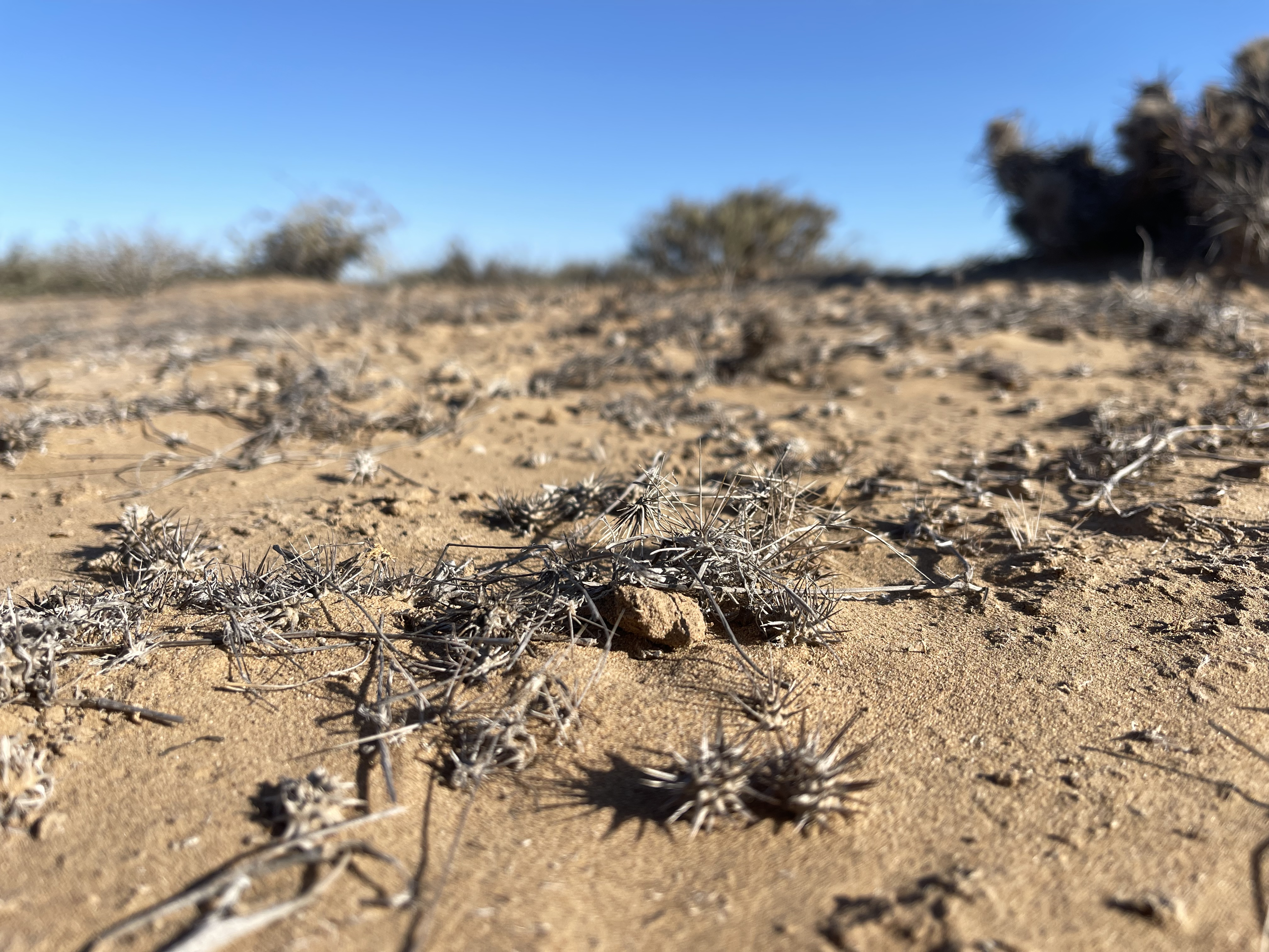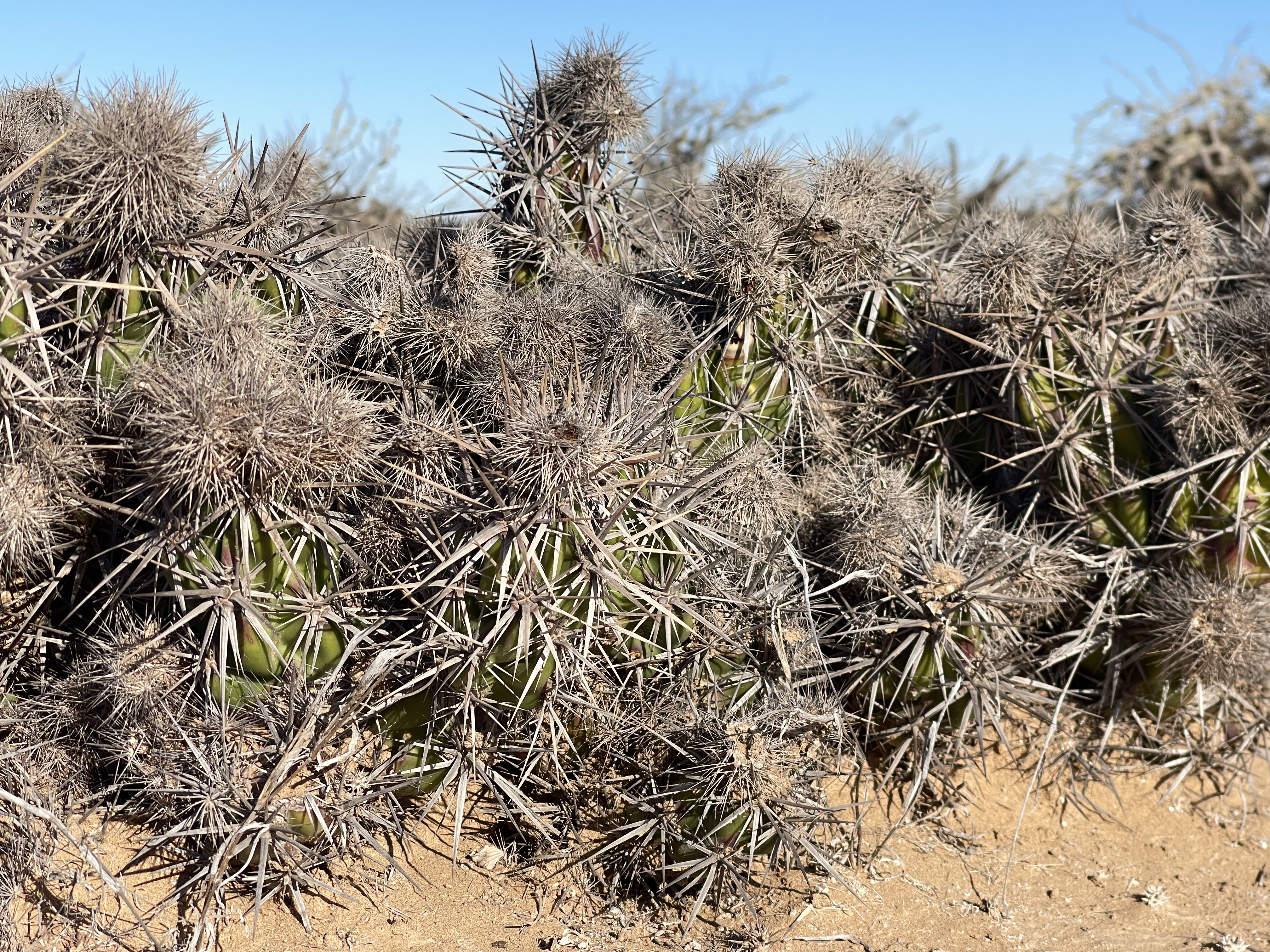 Baja offers no friendly leaning options. The ground is often covered with camouflaged dry twigs, and any seemingly robust piece of vegetation is 90% of the time coated in the most peculiar kinds of thorns—ranging from kitchen-knife-sized to completely invisible and undetectable.