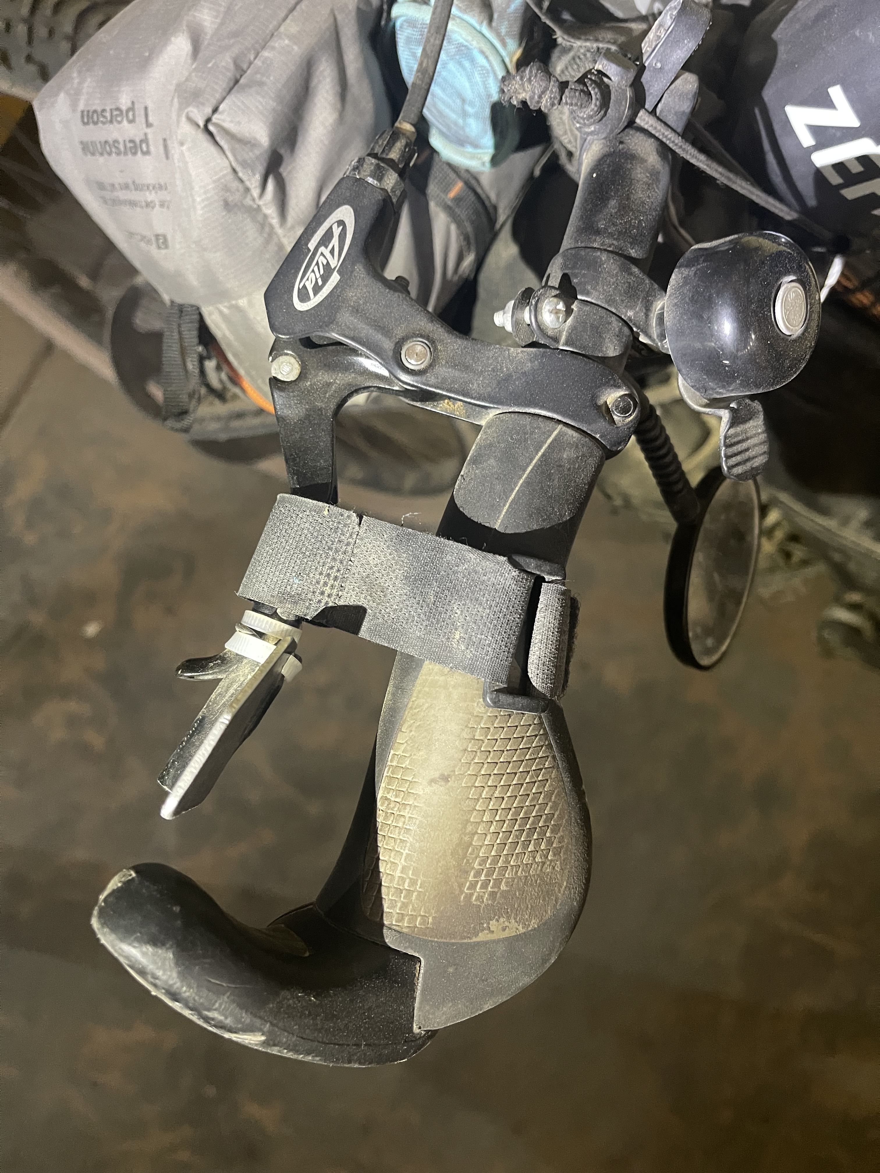 The side effect of the bike’s weight is now controlled—just like when you balance your rig almost vertically using one hand on the saddle. This balancing act causes a front-back push that makes the bike roll. To stop this, Bikerando’s clever idea of a hand brake strap comes into play. By clipping the strap around one of the brake levers and securing it to the handlebar, the brake stays engaged, preventing any forward or backward movement. Now your bike becomes a safe, sturdy station to work on—whether you’re packing, unpacking, making repairs, or just leaving it there while you head to the bathroom, go shopping, or sleep.