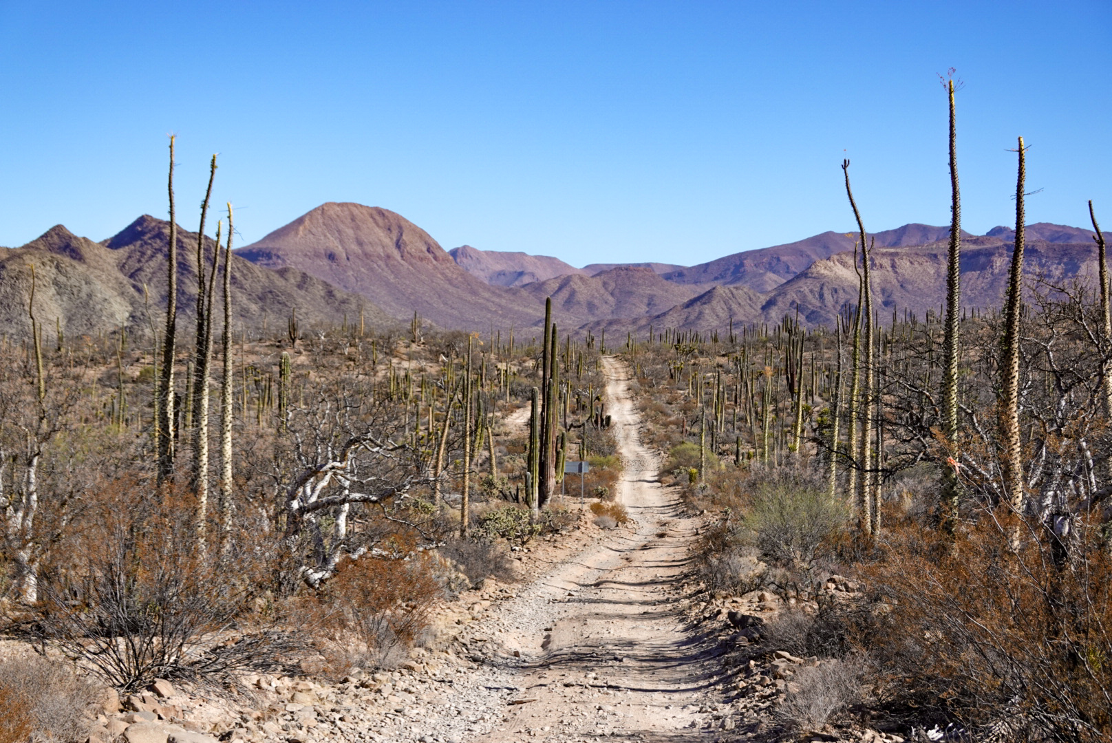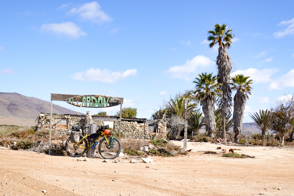 I don’t lose any sleep over the fixed hanger. Ripping off your derailleur on a rock is never something you want to do, anywhere. You could almost make the argument that you’re safer in Baja because almost every town has a mechanic that could possibly weld it back on. On the contrary there are only a small number of bike shops (2, before La Paz?) that you’re likely hundred of miles away from. Good luck unless you carry a spare hanger with you.