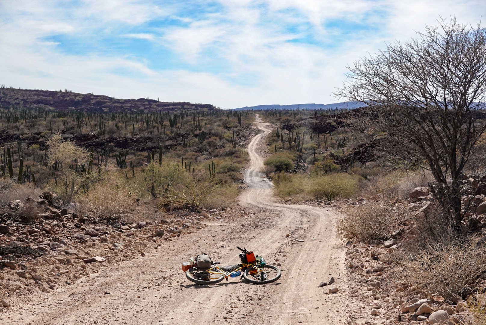 I love it. I think it’s exceptionally capable as a mountain bike and that really comes in handy on a ride like the Baja divide where a lot of the “roads” are more technical than a lot of the single track back home. The bike does great getting over, down, & sometimes through obstacles. I’ve never had another rigid suspension bike, but admittedly I’ll often take the KM out on single track track trails at home in Lieu of my Santa Cruz Hightower (a full suspension bike). It’s just a fun ride. Regarding flexibility, even when the bike is fully loaded I never feel any “wagging” in the back. It still rides stiff like it’s unloaded, and that gives you some more confidence off-road.