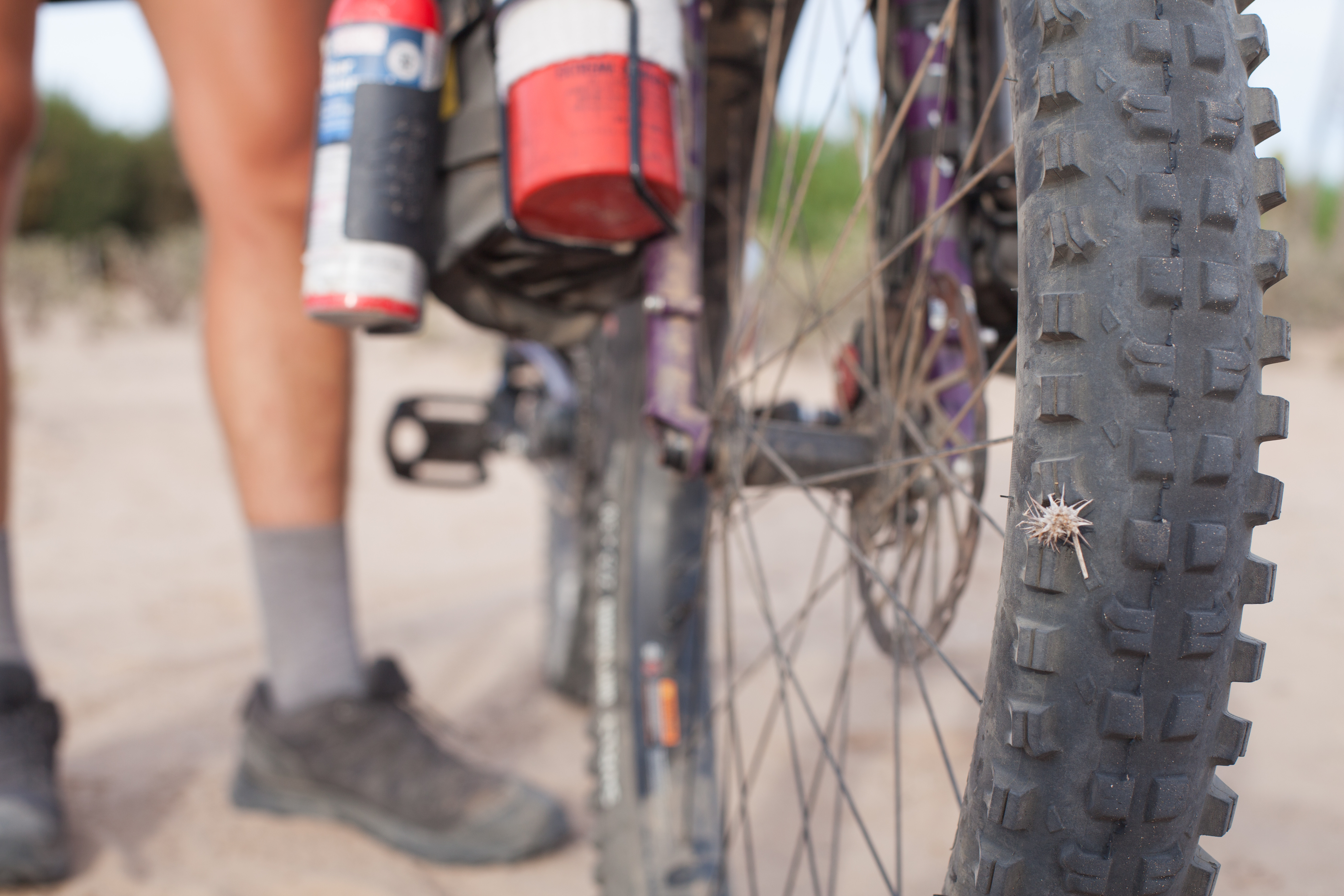 Pushing your bike far enough away to hear only the coyotes, and the occasional car that leaves a bit of its metal carcass on these chaotic tracks.